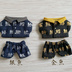 10センチぬいサイズのシャツとパンツのセットです。 黒地に金、紺地に銀の文字がプリントされた生地を使用しました。 裁断箇所によって柄(文字)は異なります。 柄の指定はできませんのでご了承ください。 パンツは靴を履けるように裾は広めになっています。 ウエスト部分はゴムで伸縮しますが、履かせる際は強く引っ張ったりせず優しくお願いします。 お持ちのぬいぐるみの綿の入り具合や骨の有無によって着用できない場合がございます。 その際の返品はお受けできませんのでご了承ください。 お洗濯はできません。水濡れは型崩れや色移りの可能性がありますのでご注意ください。 マジックテープは接着剤にて貼り付けておりますが、着用を繰り返すうちに剥がれてきてしまう場合があります。その際はお手持ちの接着剤にて貼り付けてください。 転売はおやめください。 不要になりましたら破棄をお願いします。