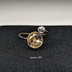 ドームの中に紋と淡水パール、金の箔が入っています。 細いワイヤーリングでかわいいデザインです。 【 サイズ 】 約12号(フリー) ※多少の気泡が入っている場合がありますのでご了承願います。 【 ご注意 】 ●金属でできていますので、アレルギー体質の方はご遠慮ください。 ●レジンを使用しております。アレルギー体質の方はご遠慮ください。 ●色味は写真とは多少異なる場合がありますので、ご了承願います。 ●とても繊細にできております。お取り扱いには十分ご注意ください。 ●素人のハンドメイド品ですので御理解の上ご注文をお願い致します。 ●初期不良の場合は到着から1週間以内にご連絡ください。返品対応いたします。そのほかの理由の返品についてはお問合せください。 ●再販がある場合、販売時期によっては同じ素材でない場合やデザインの変更もございます。 その都度告知させていただきますので、ご了承願います。 価格も一定とさせていただきたいのですが、都合により変動することもあります。こちらもご了承願います。 ●発送は「安心BOOTHパック」になります。金額には含まれていませんのでお気を付けください。