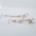 ラウンドフープの下部分に異なる淡いピンクやライトピーチ系などのガラスビーズとファイアポリッシュチェコビーズをちょこんと3つ合わせたお洒落なデザインと内容物がキラキラと輝く淡いピンク色がとても可愛いとんぼ玉ビーズを一番下に配置したシンプルなデザインをセットで1ペアにしたアシンメトリータイプのピアスとなっております。 メインのお色は優しい淡いピンク色、ゴールド金具と合わせて女性らしいふんわりした魅力のある色合いにまとめました☆ 可愛らしい色合いがお好きな方やアシンメトリーデザインがお好きな方に特におすすめの作品となっております☆ ※こんな方におすすめ♪ *大切な方へのプレゼントに *揺れるピアスがお好きな方に *アシンメトリーデザインがお好きな方に *とんぼ玉ビーズや淡いピンク色がお好きな方に <ラウンドフープと淡いピンクカラーのピアス> ☆とんぼ玉ビーズ ピンク ラウンド型 8mm玉 ☆ガラスビーズ アラバスターホワイトアンバーゴールドシャイン ボタンカット 6mm ☆ガラスビーズ アラバスターピンクオーロラ ボタンカット 6mm ☆ガラスビーズ アラバスターピンクオーロラ ボタンカット 4mm ☆ガラスビーズ オパールホワイト ボタンカット 4mm ☆ファイアポリッシュチェコビーズ ライトピーチ 4mm ☆ラウンドフープ ゴールド ☆座金 ゴールド ☆スペンサー ゴールド <淡いピンクカラーのシンプルピアス> ☆とんぼ玉ビーズ ピンク ラウンド型 8mm玉 ☆ガラスビーズ アラバスターピンクオーロラ ボタンカット 6mm ☆ガラスビーズ オパールホワイト ボタンカット 4mm ☆ファイアポリッシュチェコビーズ ライトピーチ 4mm ☆チェーン ゴールド ☆座金 ゴールド ☆スペンサー ゴールド ☆9ピン ☆Tピン ☆丸カン ☆ピアス用金具(フック式☆ゴールド) 長さは5.5cmと6cmなっております。(約1cmのピアス金具を含む)