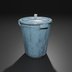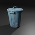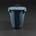 Blenderで作られたモデルにSubstancePainterで着彩されたPBRマテリアルの古ぼけて汚れた丸い青いポリバケツのゴミ箱です。