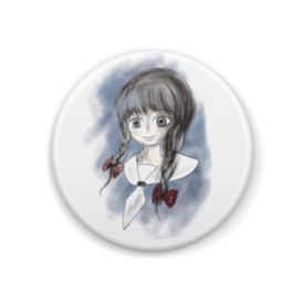 商品名『少女(赤リボン)の缶バッチ』。 サイズは44㎜です。 オンデマンド販売となります。
