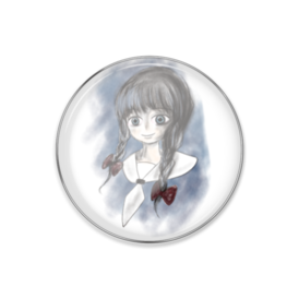 商品名『少女(赤リボン)のピンバッチ』。 サイズは25㎜です。 オンデマンド販売となります。