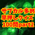 主宰している早押しクイズ大会用に作成した早押しクイズ100問part2です。 作者の個人的な趣味でサブカル系、漫画・アニメ・映画関係の出題が多めです。 あくまで「多め」なだけでベタ問ぽいものから、歴史、由来、閃き系幅広く入っているので、年代問わず楽しんで貰えるように作ってあります。 お酒でも飲みながら家族や友達とワイワイ楽しんで頂ければ幸いです。 ※競技クイズをされている方で、ちょっと毛色の違った問題でトレーニングしたいという方にもお勧めです。 ※非常にタイムリーな内容を盛り込んでいるので、遊ぶタイミング次第では問題文を調整してご使用下さい。 【利用規約】 ・本製品を特定の人物・宗教・地域などを批判・中傷する意図で使用することはお控えください。 ・本製品の使用において発生した、いかなるトラブルについても筆者は責任を負いません。自己責任でのご使用をお願いいたします。 ・内容物の無断転載、二次配布、自作発言などはお控えください。 ・本製品の内容物が利用規約に違反した使用をされていた場合、筆者からお声がけして、削除のお願いをする場合がございます。