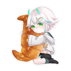 宙白ぶれっどのデビュー記念ステッカーです! クロワッサンを抱きしめた可愛らしいデザインとなっています。 この商品はpixivFACTORYで作られた商品です。サンプル画像は完成イメージのため、実物と異なる場合があります。