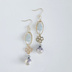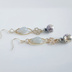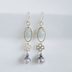しずくが揺れるオーバルフープと唐草ビーズと四葉のクローバーのピアス/イヤリング(紫とグレー)
