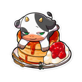 オリジナルキャラクター『FOOD×ANIMALS』パンケーキうしちゃんのステッカーです。 この商品はpixivFACTORYで作られた商品です。サンプル画像は完成イメージのため、実物と異なる場合があります。