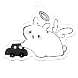 。うさぎてんしとぶーぶのアクリルキーホルダーです。🐇👼🚗