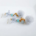 フェイクファーとフラワービーズが可愛い☆冬のもふもふピアス/イヤリング(グレー)