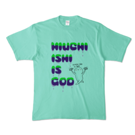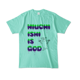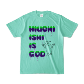 - HIUCHI ISHI IS GOD Tシャツ - L - アイスグリーン (淡色)(L - 正面 - アイスグリーン)2025-12-04
