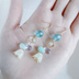イエロー色の可愛いすずらんビーズに小さめのビーズで揺れるスクエアフープやちょこんと合わせたぷっくり可愛いしずくビーズなどを合わせたお洒落なピアス/イヤリングとなっております☺ メインのお色は明るくてポップなイエローとライトブルー色の2色、ゴールド金具と合わせて爽やかで可愛い色合いでまとめました☆ イエローや明るめのブルー色などがお好きな方にはもちろんや揺れるタイプの作品やすずらんモチーフの作品がお好きな方にもおすすめの作品となっております☆ 爽やかでポップな色合いが耳元を更に明るく可愛く魅せてくれると思います☺ 2種類のぷっくり可愛いずくビーズのひとつは太陽の光によってパープルっぽいブルーにもライトブルーにも色が変わるアレキサンドライトを使用しました。 写真のしずくビーズの色合いは太陽が当たっている時に見えるパープルっぽいブルーで映っておりますが、蛍光灯の下などではライトブルーに見えますので色の変化なども合わせてお楽しみ頂けたらと思っています☺ アレルギー対応のピアスやイヤリングへの変更についてはご注文時にオプションよりご希望金具をお選び下さい。 ※こんな方におすすめ♪ *大切な方へのプレゼントに *フラワーモチーフやお星様など図形モチーフがお好きな方に *淡いパープル色がお好きな方に *可愛いデザインの作品がお好きな方に ☆すずらんのアクリルビーズ グラデーションイエロー 約8.5x10mm ☆しずく型チェコビーズ ミントミルク 9x6mm ☆しずく型チェコビーズ アレキサンドライト 9x6mm ☆ファイアポリッシュチェコビーズ アクアマリン 8mm ☆ファイアポリッシュチェコビーズ アクアマリン 4mm ☆ガラスビーズ グリーンオパールAB フラットコイン 4mm ☆スクエアフープ ゴールド ☆スペンサー ゴールド ☆9ピン ☆Tピン ☆丸カン ☆ピアス用金具(フック式☆ゴールド) 長さは約5.5cmとなっております。(約1cm程のピアス金具を含む)