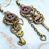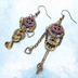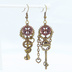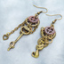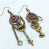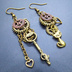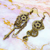 アンティークゴールド 猫と歯車モチーフを組合せたアシンメトリーピアス チェーン付 スチームパンク風