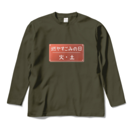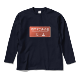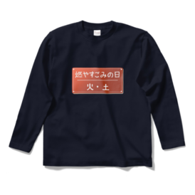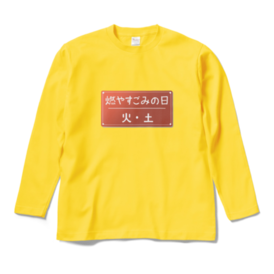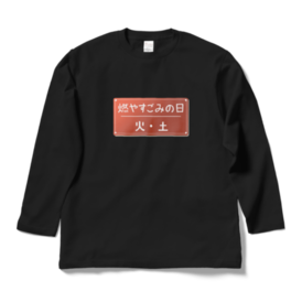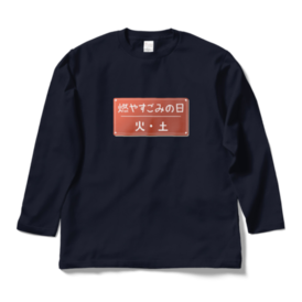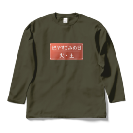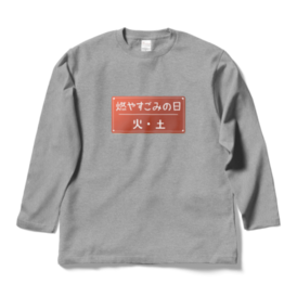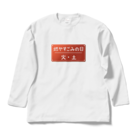 ロングスリーブTシャツ - XL - ネイビー燃やすゴミ出しを忘れないようにするための長袖シャツです。 着る時、洗濯の時、畳む時などに見てハッと思い出せるといいなと思いました。 ※曜日の組み合わせは一通り揃えたはずですが、 お住まいの地域のルールに合ったものが無かったらごめんなさい。 ※この商品はpixivFACTORYで作られた商品です。 サンプル画像は完成イメージのため、実物と異なる場合があります。