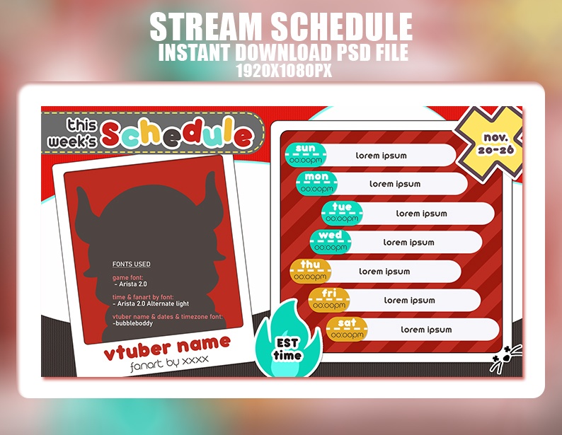 cheesekunfactowyRed Black Vtuber Stream Schedule, Layout, Template, Anime スケジュール レイアウトDigital600 JPYAdd to CartBuy a GiftAbout Giftスケジュール レイアウト Stream Schedule for streamers and vtubers, youtube, twitch, 1920x1080px PSD file included Don't hesitate to contact me in case of need or question!cheesekunfactowyVisit FANBOX!GraphicsPicnic cozy yellow violet brown blue 4 in 1 stream schedule layout template スケジュール レイアウトcheesekunfactowy600 JPYGraphicsCandy Pink Blue Stream Schedule Template スケジュール レイアウトcheesekunfactowy600 JPYGraphicsCloud Arrow Light Blue, Yellow, Pink 3 in 1 Stream Schedule Template スケジュール レイアウトcheesekunfactowy600 JPYGraphicsValentines Theme Stream Schedule Fully Customizable スケジュール レイアウトcheesekunfactowy600 JPYGraphicsWhite and Green Christmas Holiday Stream Schedule Template Vtuber Style, 2 in 1 スケジュール レイアウトcheesekunfactowy600 JPYGraphicsRoyal Design Stream Schedule Template for Streamers and Vtubers, Red スケジュール レイアウトcheesekunfactowy600 JPYGraphicsChristmas Stream Schedule Template for Anime and Vtuber Style, Xmas スケジュール レイアウトcheesekunfactowy600 JPYGraphicsFuturistic Stream Schedule Template for Vtuber, 5 in 1 blue, green, orange, violet, red スケジュール レイアウトcheesekunfactowy600 JPYGraphicsGreen Violet Orange Pink Blue Stream Schedule Template for Vtuber 3 in 1 bundle.cheesekunfactowy600 JPYGraphicsViolet Orange Stream Schedule Template for Vtuber , Anime Layoutcheesekunfactowy600 JPYGraphicsStream Schedule Template for Streamers and Vtubers, Dark, Gray, Futuristic スケジュール レイアウトcheesekunfactowy600 JPYGraphicsPink Blue Stream Schedule Template for Vtuber, Stylish and beautiful スケジュール レイアウトcheesekunfactowy600 JPYGraphicsOrange VTuber Stream Schedule Template Elegante スケジュール レイアウトcheesekunfactowy600 JPYGraphicsVtuber Stream Schedule Template, Festival, Purple スケジュール レイアウトcheesekunfactowy600 JPYIconsValorant Twitch Sub & Cheer Badges Twitch, Youtube, Discordcheesekunfactowy400 JPYIconsalorant Ascendant Twitch Sub Badge, Cheers, Youtube, Discordcheesekunfactowy400 JPYIconsTechnoblade Minecraft Pig Twitch Badge & Cheer, Emoji, Youtube, Discordcheesekunfactowy400 JPYIconsTako squid Twitch Sub & Cheer Badges Twitch, Youtube, Discord Cute food,cheesekunfactowy400 JPYIconsGenshin Impact Primo Gem, Mora Coin Twitch Sub & Cheer Badges Twitch, Youtube, Discordcheesekunfactowy400 JPYIconsMinecraft Zombie Twitch Badge & Cheer, Emoji, Youtube, Discordcheesekunfactowy400 JPYSee More