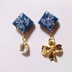 シールとレジンで模様をつけた美濃焼タイルに揺れものをつけた蝶バネタイプのイヤリングです。 ※それぞれ一点もの 【使用色(クリスタル)】 青…クリスタルイグナイト 茶…ヴィンテージローズ 【サイズ】 右耳用…約2.6mm 左耳用…約3.4mm ・お子様の手が届かない場所に保管してください。 ・尖っている箇所があります。 ・金属アレルギーの方は使用なさらないでください。また、商品で体に異変が起きてもこちらでは責任が持てません。 ・傾いていたり、少し隙間が空いている箇所があります。 ・ペンチで曲げて加工しているため、細かな傷が多数存在します。 ・接着剤を使っているため、劣化して外れてしまう可能性があります。 ・表面にレジンを塗っているため、黄変する可能性があります。 ・返品、値下げは受け付けておりません。