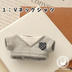 1:Vネックシャツ グレー色のVネックシャツと白Tシャツの重ね着風 2:付け襟風リボン ドッド柄の付け襟風リボン。 背面の面テープで着脱する構造です。 ※ぬいぐるみの首回りのデザインによっては、サイズが合わない場合がございます。 ※布の柄の出方・シャツのポケットの大きさは個体差がありますので、写真と商品の雰囲気が若干異なる場合がございます。