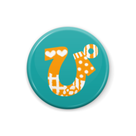 柄文字缶バッジ 「ぴ」 (オレンジ×緑)