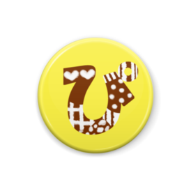 柄文字缶バッジ 「ぴ」 (茶×黄)