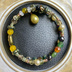 磁石を思わせるようなヘマタイトビーズや、鱗のような模様入りアゲート等を使い、2人の持つ雰囲気をイメージしながら作りました✨