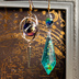 三日月煌る天球儀とエメラルドペンデュラム 歯車スチームパンク ピアス イヤリング★球体宇宙レジン メンズアクセサリーにも★