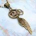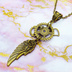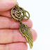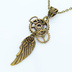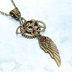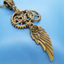 アンティークゴールド 翼と歯車を組合せたスチームパンク風ネックレス オープンハート 長さ調整可 アジャスター追加可