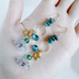 グレーオーロラ色の可愛いフラワービーズにぷっくりしずくビーズとお星様が揺れるサークルフープ、深い緑色がとても綺麗なクリソコラのミニタンブルなどを合わせたお洒落なピアス/イヤリングとなっております☺ メインのお色は森林浴をイメージした幻想的で癒し効果ばっちりの濃いめの緑色、ゴールド金具と合わせて爽やかな色合いでまとめました☆ 緑やパープル系のお色などがお好きな方にはもちろんや揺れるタイプのデザインやフラワーモチーフの作品がお好きな方にもおすすめの作品となっております☆ アレルギー対応のピアスやイヤリングへの変更についてはご注文時にオプションよりご希望金具をお選び下さい。 *クリソコラは自然の摂理やエネルギーの流れに逆らわずに丁寧に生活する人に力を与えてくれる石と言われています。 色々な事に対してしっかりと地に足を着けた実りのあるものになるようにサポートしてくれる石として幸せな家庭生活の象徴の石としても知られています。 また、心身のバランスを整えてストレスを吸収してくれるので、情緒を安定させるのに有益な石ともいわれています。 クリソコラは他にも… *幸運と繁栄の象徴 *表現力の向上 *情緒の安定 *ストレスの吸収 *体内時計の正常化 *自然との繋がり などの効果もあると言われています。 ※天然石には石によって割れやすいものや、キズなどがついているものが御座います。 出来るだけ作品に使用する石は綺麗なものを選んでおりますが、まれにキズやインクルージョンが含まれているものがございます。 予めご了承頂けます様にお願いいたします。 ※こんな方におすすめ♪ *大切な方へのプレゼントに *フラワーモチーフやお星様など図形モチーフがお好きな方に *緑色がお好きな方に *可愛いデザインの作品がお好きな方に ☆アクリルフラワービーズ グレーオーロラ 約16mm ☆クリソコラ(天然石) ミニタンブル 約6~7mm ☆ガラスビーズ エメラルドグリーン ボタンカット 6mm ☆ガラスビーズ シルバー ボタンカット 4mm ☆しずく型チェコビーズ ディープシー 9x6mm ☆サークルフープ ゴールド ☆お星様パーツ ゴールド ☆スペンサー ゴールド ☆9ピン ☆丸カン ☆ピアス用金具(フック式☆ゴールド) 長さは約7cmとなっております。(約1cm程のピアス金具を含む)
