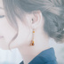 ラウンドフープ付き☆ルナフラッシュとガラスビーズの秋色トパーズカラーのアシンメトリーピアス/イヤリング