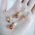 ラウンドフープの下部分に異なるゴールドやトパーズ系などのガラスビーズをちょこんと3つ合わせたお洒落なデザインとオーロラのように幻想的で大人っぽいトパーズ色が素敵なルナフラッシュを一番下に配置したシンプルなデザインをセットで1ペアにしたアシンメトリータイプのピアスとなっております。 メインのお色は大人っぽくトパーズとゴールド色の2色、ゴールド金具と合わせて秋冬シーズンはもちろん、オールシーズンご利用頂けるワンランク上の華麗な色合いでまとめました☆ ルナフラッシュは特殊加工された半球を繋ぎ合わせて人工石になっております。 見る角度や光の当たり具合によってまるでオーロラの様に色々な顔を魅せてくれます。ご着用されている方も見ている方も両方ともお楽しみ頂ける作品になっております☺ 大人な色合いがお好きな方やアシンメトリーデザインがお好きな方に特におすすめの作品となっております☆ ※こんな方におすすめ♪ *大切な方へのプレゼントに *揺れるピアスがお好きな方に *アシンメトリーデザインがお好きな方に *ルナフラッシュがお好きな方に <ラウンドフープと大人トパーズカラーのピアス> ☆ルナフラッシュ トパーズ ラウンド型 8mm玉 ☆ガラスビーズ アラバスターホワイトアンバーゴールドシャイン ボタンカット 6mm ☆ガラスビーズ フルコートゴールド ボタンカット 6mm ☆カーネリアン(天然石) 32面カット 4mm ☆ガラスビーズ オパールホワイト ボタンカット 4mm ☆ファイアポリッシュチェコビーズ トパーズ 4mm ☆ラウンドフープ ゴールド ☆座金 ゴールド ☆スペンサー ゴールド <大人トパーズカラーのシンプルピアス> ☆ルナフラッシュ トパーズ ラウンド型 8mm玉 ☆ガラスビーズ アラバスターホワイトアンバーゴールドシャイン ボタンカット 6mm ☆ファイアポリッシュチェコビーズ トパーズ 4mm ☆カーネリアン(天然石) 32面カット 4mm ☆チェーン ゴールド ☆座金 ゴールド ☆スペンサー ゴールド ☆9ピン ☆Tピン ☆丸カン ☆ピアス用金具(フック式☆ゴールド) 長さは5.5cmと6cmなっております。(約1cmのピアス金具を含む)