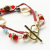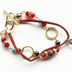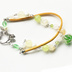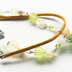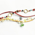 ●コード部分にねじるようにしてビーズ部分を絡ませてから着けるとぴったり付けられます。 【龍水】ブラッドストーン/ヘマタイト/ガーネットを使用。マンテル部分はベルトのバックルのようなデザインです。 スエード風コード(赤)を使っています。他ビーズ、ヴィトライユガラス、ロンデルはオーロラカラー。デザイン丸カンや全体の色合いは力強くしっかりした雰囲気です。 ブラッドストーン:祝福 ヘマタイト:保護 ガーネット:永遠に続く 【羽京】シトリン・カルセドニー(緑/黄色/白)・ペリドット ぶどうの房のついたマンテルを使用しています。スエード風コードの中心にあるのは、ワイヤーアートを施したシーグラス(緑)です。艶消しのパールのビージなど、全体に砂糖菓子や果物のようなイメージになっています。 シトリン:肥沃 カルセドニー:思いやり ペリドット:明るい未来