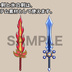 立ち絵素材、炎の剣と氷の剣を持つ、アイドル衣装の女戦士、C13。