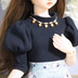 【スーパードルフィー女の子サイズ】 〔〔♡Black♡〕〕 ♡カットソー ♡ネックレス 計2点セットです シンプルな作りですが、 ボリュームのあるパフスリーブの 六分袖のカットソーです♡ どんなお洋服にも 合わせやすいと思います.:*:・'°☆ 生地がリブニットなので多少伸びますが 裾・袖口には伸び止めを施してあるので 少し着せにくくなっています。 ですが、何度か着せ替えても 生地が伸びずにキレイな状態が続きます♪ ヘッドを外して着せるタイプになります.。*♡ なので後ろ姿もキレイです(*´`)。*゚+ ハンドも形によっては外して 着せてあげて下さい( ꈍᴗꈍ) 皆様の素敵なお嬢様に是非着せてあげて下さい♡ 完全なオリジナル商品です(*^^*) 商品はレターパックにて発送させて頂きます。 ーーーーーーーーーーーーーーーー 【モデル】 ・スーパードルフィー SDまい(女の子) (株)ボークスより製造販売 創作造形©ボークス、造形村