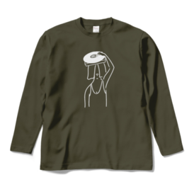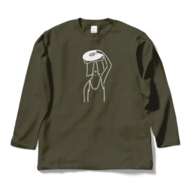 ロングスリーブTシャツ/濃色カラー/頭からレコードかけてる