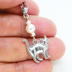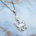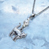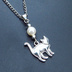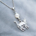 アンティークシルバー 歩き猫シルエットモチーフとスワロフスキーパールのネックレス 長さ変更可 SV925可