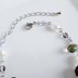 小さめサイズながら存在感たっぷりのスクエア型のフレームストーンを真ん中に配置し、内容物が煌めくパープルマーブル色のとんぼ玉ビーズ、ぷっくり可愛いパープルベースにブルーとグリーンが交わったようなドリームとオパールホワイトの2色のしずくビーズ、上品な淡水パール、ガラスビーズなどを合わせたお洒落なブレスレットとなっております☺ メインのお色は幻想的で大人っぽいパープルとホワイト色、シルバー金具と合わせてプチゴージャスでカッコよさげな雰囲気にまとめました☆ 淡水パールやとんぼ玉ビーズがお好きな方にはもちろん、パープルやホワイト色など寒色系のお色がお好きな方に特におすすめの作品となっております☺ *淡水パールの色合いは女性の肌に良く馴染みに高貴さを与えてくれると言われています。美しさや高貴さには低次元のものや不純なものを寄せ付けない強さが宿ると言われていることからお守りとして身に着けるのも良いと思います☺ 淡水パールは他にも… *心や生活に余裕を作る *エネルギーを奪うものから守る *感情を受け取り、昇華させる *持久力や忍耐力を養う などの効果もあるかもしれません。 ※こんな方におすすめ♪ *大切な方へのプレゼントに *ユニークなデザインのブレスレットがお好きな方に *淡水パールや淡水パールがお好きな方に *紫色がお好きな方に ☆とんぼ玉ビーズ クリアパープル×パープルマーブル ボタンカット 10mm ☆しずく型チェコビーズ ドリーム オパール 9x6mm ☆しずく型チェコビーズ オパールホワイト 7×5㎜ ☆淡水パール(天然石) ライス 5~7cm程 ☆ファイアポリッシュチェコビーズ ピンクパープル 4mm ☆ファイアポリッシュチェコビーズ タンザナイト 4mm ☆アクリルフレームストーン クリア×シルバー スクエア 4×12mm ☆スペーサー シルバー ☆9ピン ☆丸カン ☆アジャスター ☆カニカン 長さは約21.5cmとなっております。(5cm程のアジャスターを含む)