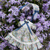 リバティプリント生地を使用したドール用ワンピースと、共布のヘッドドレスです。 背中メカニカルテープ開閉、スカート部縫い付け(全開にはできません) フリル部分やリボンが特に繊細ですので、ひっぱったりひっかけたりしないようご注意ください。