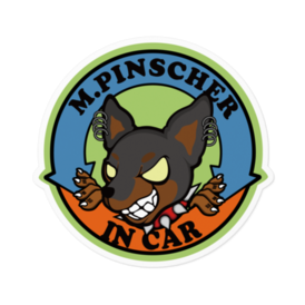 ステッカー - 100 x 100 (mm)【ちょい悪ピンシャーがカーライフを盛り上げる!】 ミニチュアピンシャー愛好家必見! あなたの愛車をさらに世界に自慢できるツールのミニチュアピンシャーブラックタンが車用ステッカーで登場しました! ありそうで無かったブラックタンのちょい悪デザインが可愛い♥ 愛犬とのドライブが更に楽しくなること間違いなし! この可愛らしい犬種の姿が、あなたの愛車をさらに個性的に演出してくれます♪ 耐久性も抜群で、存在感を放つちょい悪ピンシャーがあなたの車をオシャレに盛り上げてくれる事でしょう♪ 末永く愛車を守りながらドライブを楽しむことができますね。 ミニチュアピンシャーと一緒に運転するような、楽しいドライブを実現しよう♪ #ミニチュアピンシャー #カーライフ #ステッカー #車用ステッカー #個性的な愛車