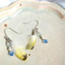 鳥の柄付羽根のピアス(青系ビーズ)
