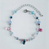 ぷっくりとした形が可愛らしい2色のしずく型チェコビーズをメインに透き通ったようなブルーや優しいピンク色などのガラスビーズやファイアポリッシュチェコビーズをグラデーション風に合わせたお洒落なブレスレットとなっております☺ メインのお色はおとぎ話の海の中をイメージしたブルーとピンク色の2色、シルバー金具と合わせて涼しげで可愛い雰囲気に仕上げました☆ 従来のシリーズよりビーズを少し多めに合わせ、サイズを一回り大きくしましたので今までのデザインよりも着用しやすくなったと思います。 単品でのご着用はもちろん、お手持ちのブレスレットと合わせてご着用をお楽しみ下さい☆ ☆しずく型チェコビーズ ディープシー 9x6mm ☆しずく型チェコビーズ コンビ・ピンクパープル 9x6mm ☆ガラスビーズ オーシャンブルー ボタンカット 6mm ☆ガラスビーズ アラバスターピンクオーロラ ボタンカット 6mm ☆ガラスビーズ メタリックブルー ボタンカット 4mm ☆ファイアポリッシュチェコビーズ スモーキーピンクラスター 4mm ☆ガラスビーズ オーシャンブルー ボタンカット 4mm ☆ガラスビーズ ライトブルーオーロラ ボタンカット 6mm ☆ガラスビーズ ライトブルーオーロラ ボタンカット 4mm ☆ガラスビーズ フルコートシルバー ボタンカット 4mm ☆ガラスビーズ ピンクオーロラ ボタンカット 4mm ☆9ピン ☆丸カン ☆カニカン ☆アジャスター 長さは約21.5cmとなっております。(5cm程のアジャスターを含む)