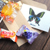 贈り物や手紙に同封したり、ワインボトルにリボンで結びつけるなどしてお使いいただけます。裏は白地ですので、ペン等でメッセージを書き込むことも可能です。 また、渡す前に香水を一吹きしたり、お菓子と一緒にホチキスで留めてお渡しするのもお勧めです。 クリアなスマホケースに挟んだり、紐をつければ栞としてもお使いいただけます。 ミヤマカラスアゲハの鮮やかなきらめきを表現するため、紙自体がキラキラと光るものを使用しております。また、Thank youの部分は箔押しになっています。 (印刷所:名刺21さん) 縦54mm×横86mm ・箔押しは、1mm以下の若干のズレがある場合があります。 ・紙製品ですので、汚れや濡れにご注意ください。 ・送料には封筒代が含まれることをご了承ください。