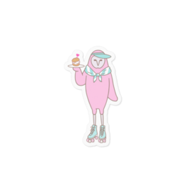 ステッカー - 100 x 100 (mm)「ShuCREAM Cafe」の店員、メンフクロウの「シュ様」が、ローラースケート&サンバイザー姿であなたをお出迎え!80年代の夢見るような雰囲気が漂うステッカーです。スマホケースに挟んで持ち歩けるサイズ感で、毎日がカフェ気分♪ この商品はpixivFACTORYで作られた商品です。サンプル画像は完成イメージのため、実物と異なる場合があります。