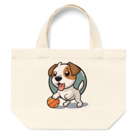 トートバッグ - S - プリント面積小イラストはジャック・ラッセル・テリアをイメージして作成しました。 サイズ感:画像2枚目はiPad miniと並べて、3枚目はスリムなティッシュボックスを入れてみました。丁度入る大きさです。 ワンちゃんのお散歩に使える手軽なトートバッグです。 この商品はpixivFACTORYで作られた商品です。