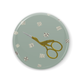 缶ミラー - 56mmこの商品はpixivFACTORYで作られた商品です。サンプル画像は完成イメージのため、実物と異なる場合があります。 糸切り鋏が描かれた手のひらサイズの缶ミラーです。