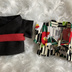 13cm/16センチぬい用 ぬい服 和装 羽織 お出かけセット 椿と矢絣 黒