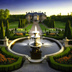 ヨーロッパ風_架空の貴族の噴水があるお屋敷のトレース・背景素材