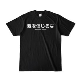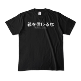 親を信用できない全ての方のためのTシャツです。 ※この商品はpixivFACTORYで作られた商品です。サンプル画像は完成イメージのため、実物と異なる場合があります。