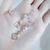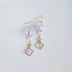 スクエアとお星様付き☆ルナフラッシュとガラスビーズのマットライトアメジストカラーのピアス/イヤリング