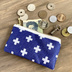 【クロス柄】畳縁 テトラ型 ペンケース 青 北欧 十字 プラス柄