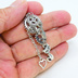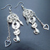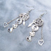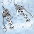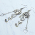 アンティークシルバー スチームパンク風 猫と歯車を組合せたチェーンピアス ハート 吊り下げ サージカル可
