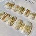 レオナ(フェアリーガラ)のイメージネイルです。 ※ご購入前に※ ショップの自己紹介文にご購入前の注意事項を記載しております。 読んでいただいてから、ご購入をお願いいたします。 ◆ネイルチップのオプションについて 有償ですが、以下2つのオプションがございます。 ご希望の場合、こちらも併せて、ご注文くださいますよう お願いいたします。 https://chiru9.booth.pm/items/6045700 ・ご注文(支払完了)から1週間以内に到着を希望 ・左右1本ずつのみご希望のデザインに変更 ◆ネイルチップの測り方について 4.5枚目の爪の測り方を参考に測るようお願いいたします。 サイズが心配な場合は、1つ大きいサイズを選ぶことをお勧めいたします。 ◆ネイルチップについて チップの種類は2種類あります。 6.7枚目のネイルチップサイズ表の画像を参考に サイズをメッセージにてお知らせください。 ※サイズに不安がある場合、サンプルチップのご購入を お願いいたします。 サンプルで測っていただいた後にご購入をお願いいたします。 ◆発送・作成について お支払いいただいてからの作成となります。 発送まで10日~1か月程度かかります。 お急ぎの場合は、メッセージにてご連絡いただけると幸いです。