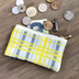 【タータンチェック】畳縁 ぺたんこ ミニポーチ 小銭入れ カードケース 黄色 シンプル