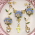 ご覧いただきましてありがとうございます。 樹脂粘土製のパーツとリーフコネクター、チャームを使用しています。 勿忘草のブーケの青とリーフコネクターの緑、ゴールドの金具の色味が調和した、とてもきれいなピアスです。 全長約5.6cmとちょっと長めなので、華やかさもありますよ! ピアス金具はサージカルステンレス製のものを使用しています。 写真ではスタッドピアス(サージカルステンレス)でお仕立てしていますが、お好きなパーツへの変更も承ります。 ご希望のパーツを選択していただきますようお願いいたします。 サフィックス社のスウェットバリアを使用しての金属アレルギー対応も可能です。 ご希望の方は右のメニューより「金属アレルギー対策有」の項目を選んでください。 また、こちらのピアスとお揃いのブーケを使ったネックレスもございます。 よろしければこちらもどうぞご覧下さいね! → https://sakurablossoms.booth.pm/items/4774546 ※注意※ ☆お花のパーツは樹脂粘土でできています。性質上強い力や水濡れに弱いので、やさしいお取り扱いをお願い致します。 ☆定形外郵便でのお届けのみとなります。 【Size】 ・ブーケ:約1.6cm×1.6cm ・リーフコネクター:25mm×15mm ・リボン付きパールチャーム:1.2cm×10cm